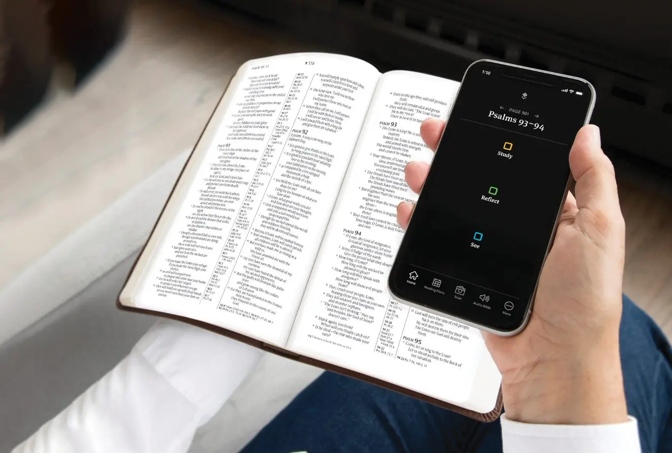 These beautifully crafted Bibles offer a simple and engaging reading experience. But just scan a page with your phone or tablet and it opens an app filled with thousands of study and worship resources curated to the page you are reading.